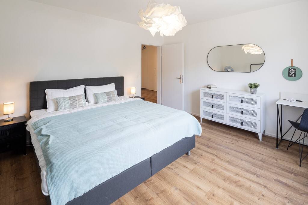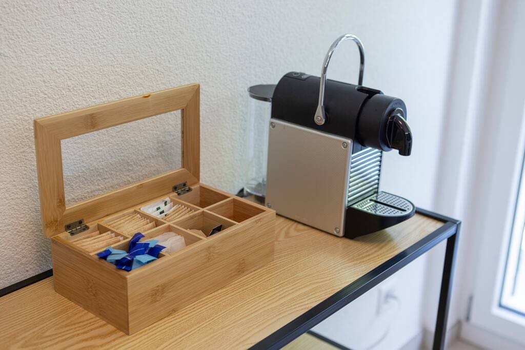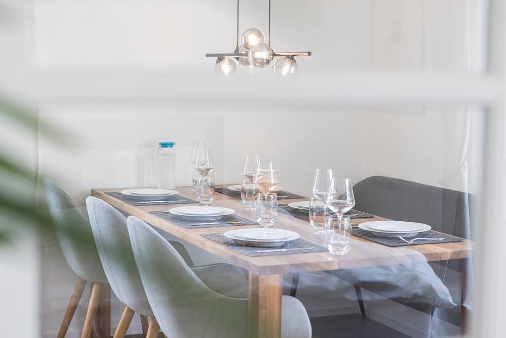 Auf dem kleinen Balkon können Sie morgens einen leckeren NESPRESSO genießen und erholt in den Tag starten. Das Apartment verfügt über bequeme Kingsize-Boxspringbetten, einen großen Smart-TV mit Netflix, Kabel-TV, Amazon Prime und einen großzügigen Esstisch für 6 Personen.