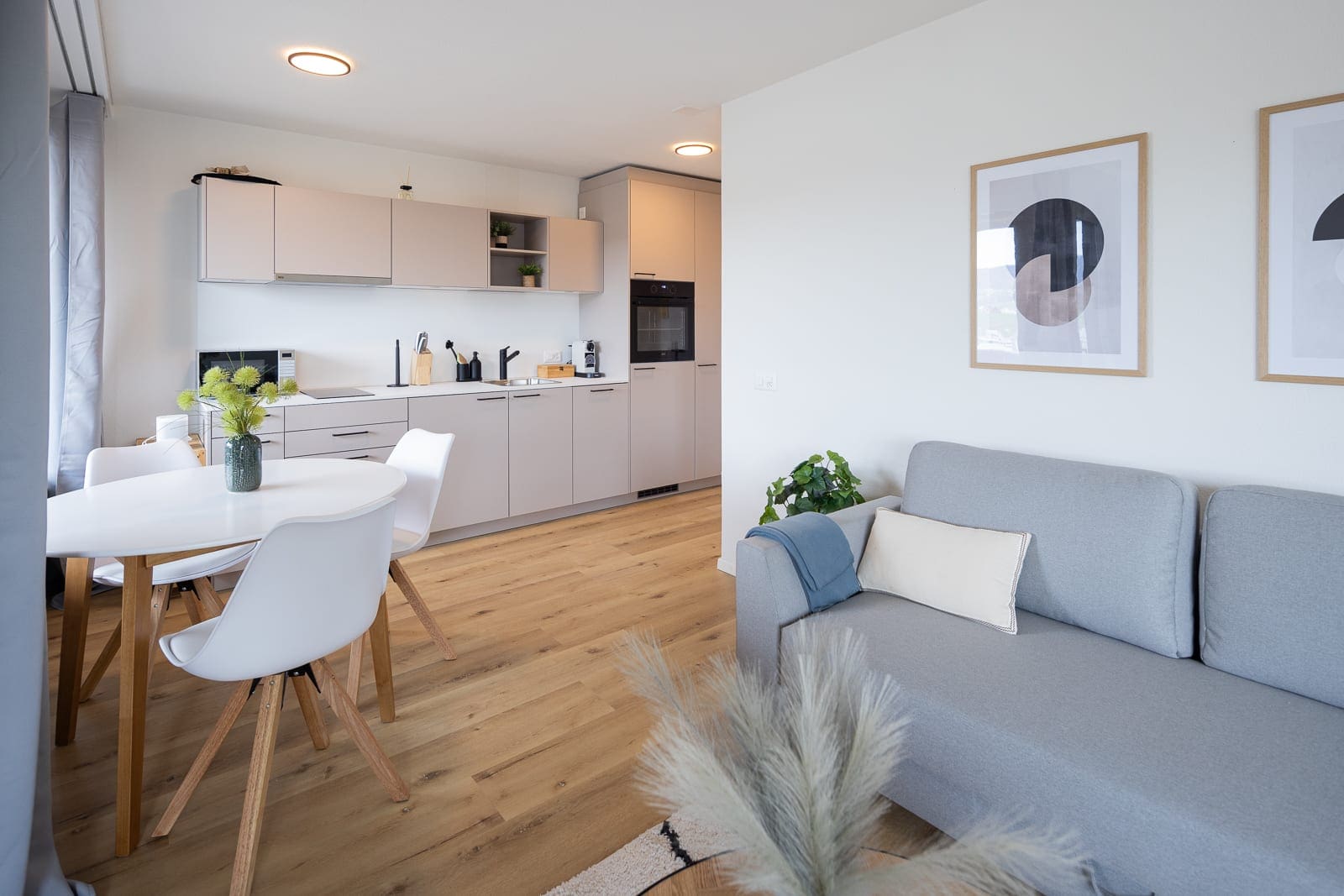 Che sia per lavoro o per un viaggio in città, in questo appartamento di buon gusto con vista sulle montagne e sulla valle della Limmat non vi mancherà nulla.