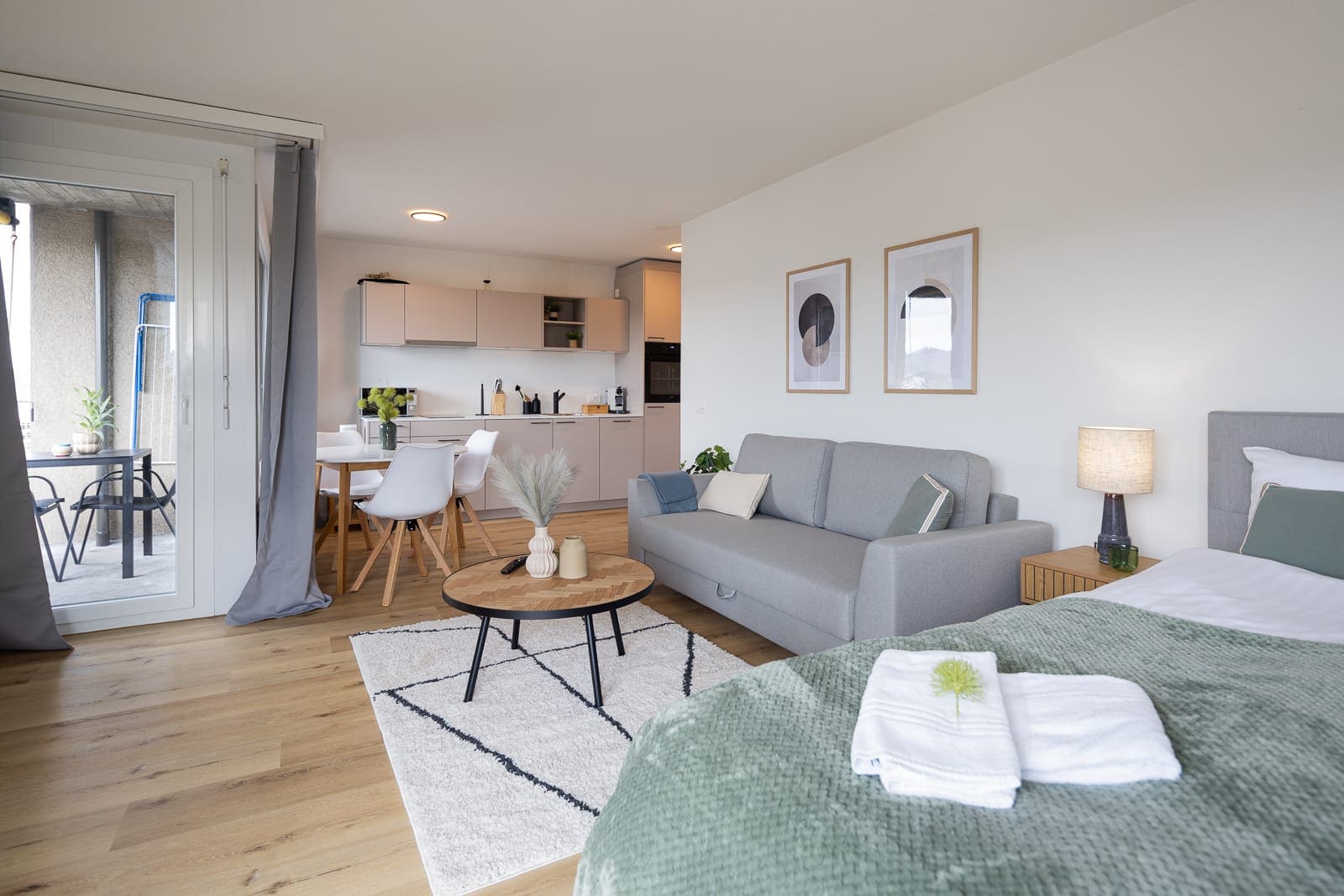 Benvenuti a STAYY Living Like Home e in questo appartamento di alta qualità, recentemente ristrutturato, che vi offre tutto ciò di cui avete bisogno per un fantastico soggiorno di breve o lungo termine vicino al Limmattalspital: